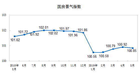 5月份,房地产开发景气指数(简称“国房景气指数”)为100.85,比4月份回落0.07点。