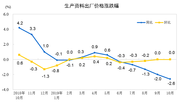 2019年10月工业生产者价格主要数据