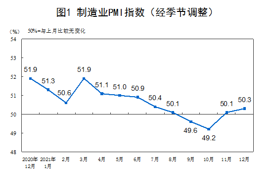 【数据名称】12月PMI50.3%环比升0.2个百分点 连续两月回升