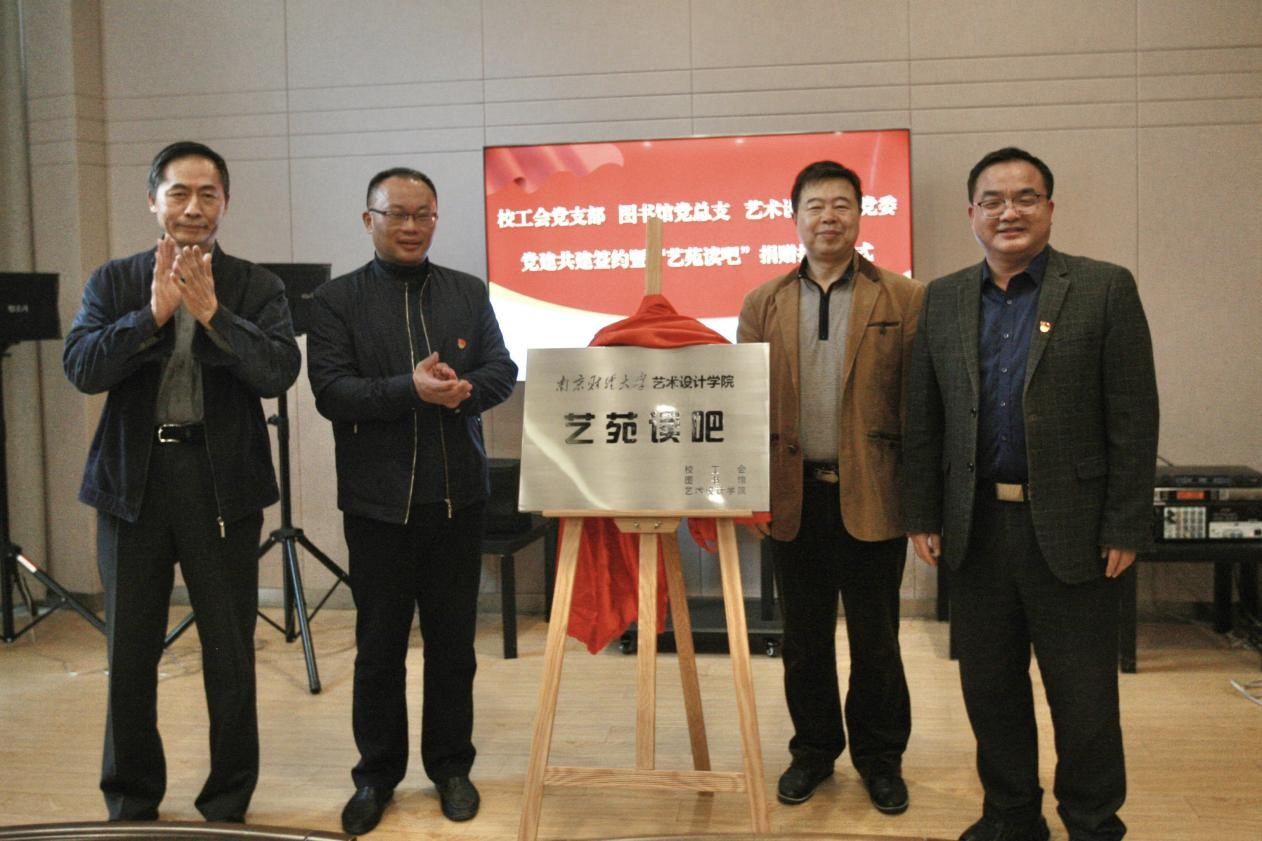 在签字环节,陆斌书记代表图书馆,刘浩书记代表艺术设计学院,吴丹副主席代表工会,三方正式签署党建共建协议书。协议明确三方共建艺术设计学院的“艺苑读吧”,其中,图书馆向“艺苑读吧”提供艺术类的杂志、画册等,实现图书资源共享。