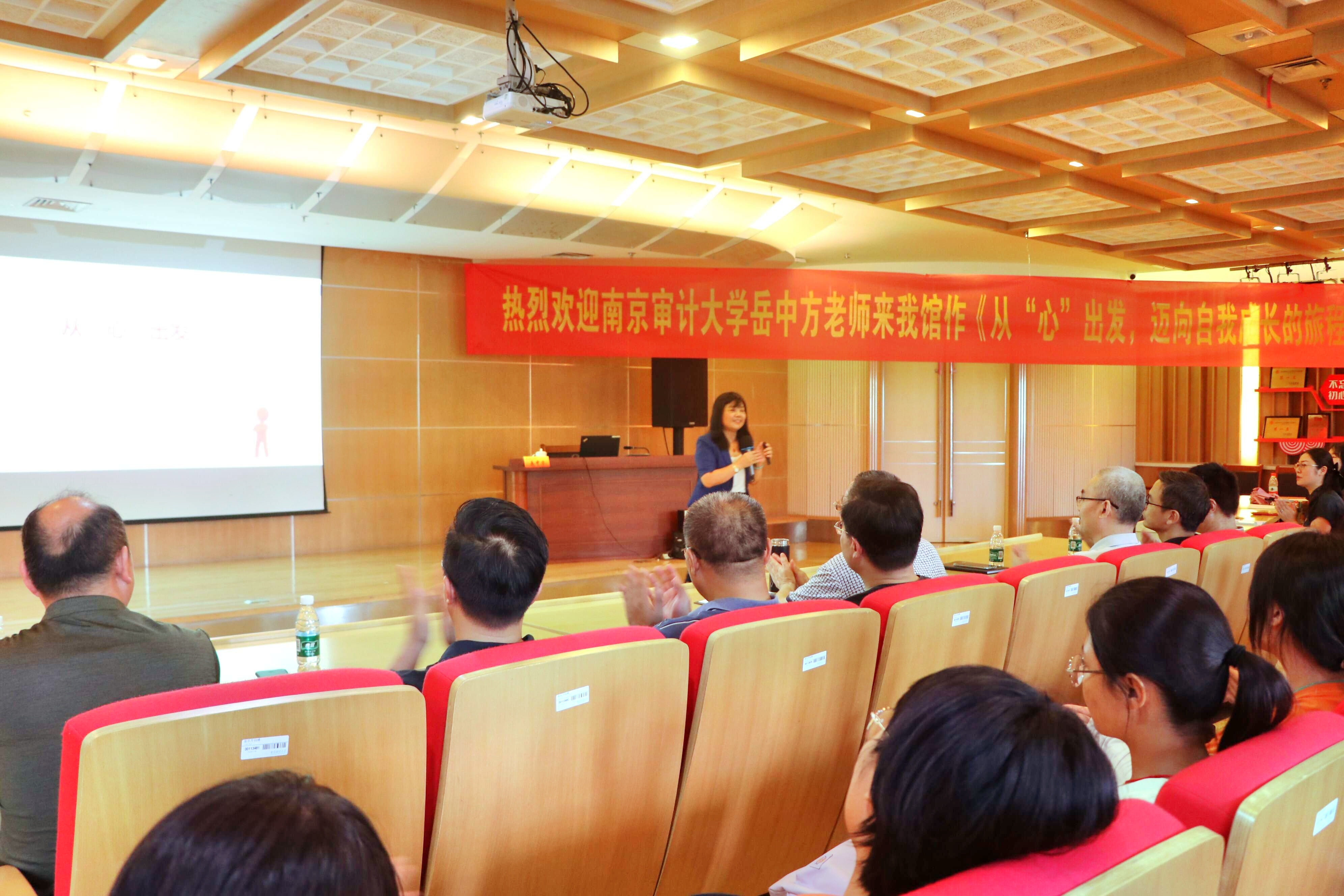 9月18日下午在仙林图书馆音乐欣赏厅,南京审计大学图书馆岳中方副馆长应邀来我校图书馆,以“从 ‘心’出发,迈向自我成长的旅程”为主题开展2024级新生心理专题讲座。图书馆党总支书记陆斌、馆长程永上、副馆长张国军,保卫处党支部、梅西学院党总支与图书馆党员教师代表,以及来自法学院、经济学院2024级的新生代表,近200名师生共同参加了此次活动。馆长程永上主持讲座并致欢迎辞。