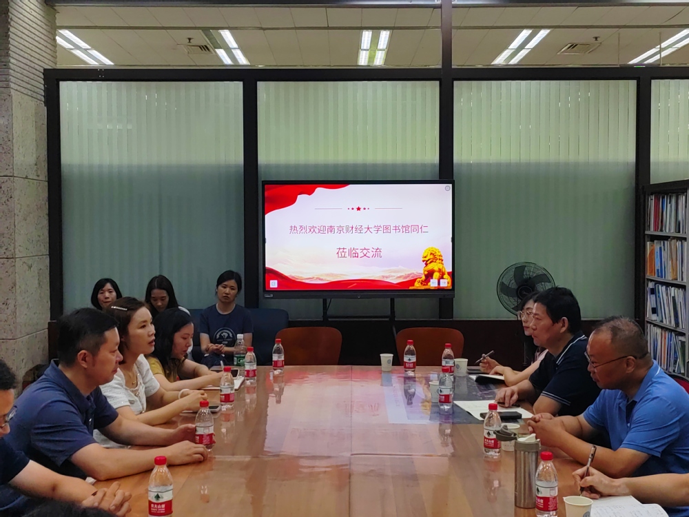 观展结束后,图书馆党总支与南京图书馆参考咨询部党支部进行了共建交流。南京图书馆参考咨询部周立锦书记为首的党建团队介绍了服务理念、工作方法、具体成效;图书馆文体增色同心圆党支部书记陆斌、教学科研大服务支部副书记史明明、党员代表符静三位同志进行了交流发言。双方一致表示,后续将进一步加强业务合作,推进资源共享。