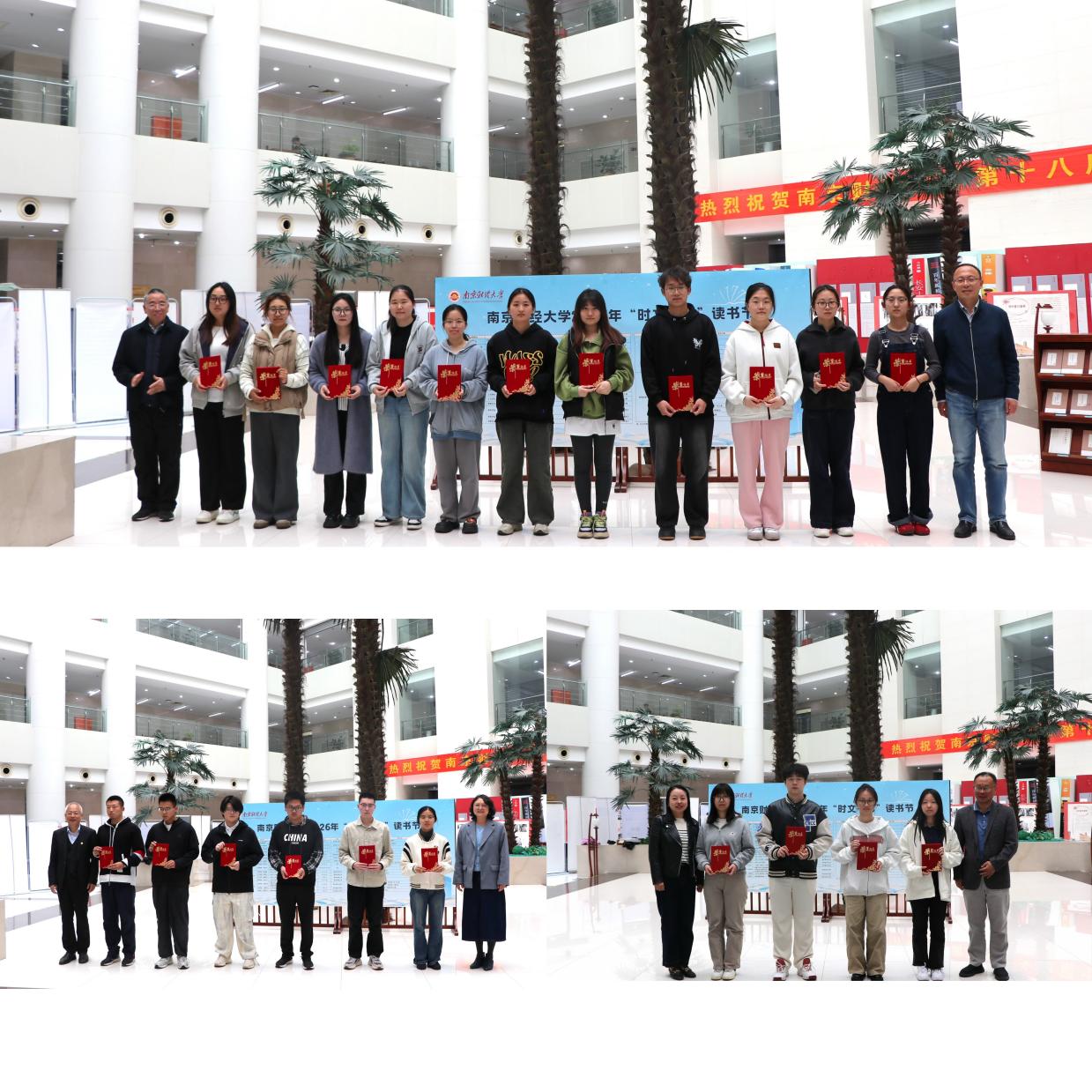 随后,与会领导嘉宾和领导为2025年度南京财经大学阅读达人、泡馆达人、优秀志愿者及勤工助学先进个人颁发荣誉证书,表彰在阅读推广与校园书香建设中表现突出的师生,以榜样力量引领阅读风尚。